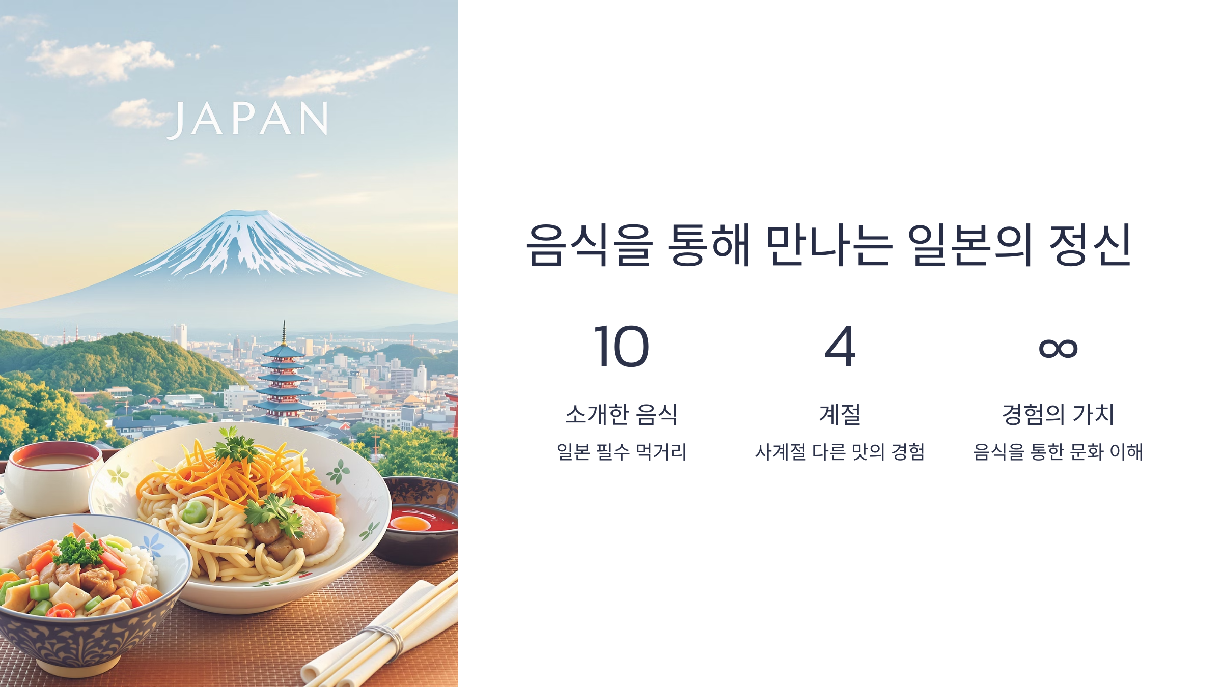 일본 여행의 진짜 매력은 '먹방'입니다. 스시부터 라멘까지, 일본에서 놓치면 후회할 음식들을 지금부터 소개할게요!